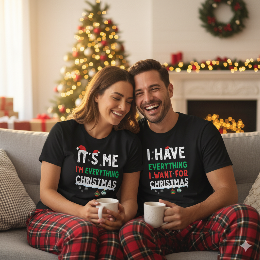 Holiday shopping is chaos — matching tees shouldn’t be. Throw these on, look ridiculous together, and instantly become the main characters of Christmas.